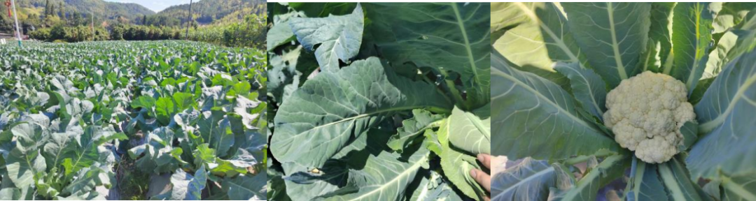 使用競雙750倍+25%噻菌銅噴霧防治花椰菜軟腐病,莖基部、葉片、花頭正常生長,未見軟腐病發生。