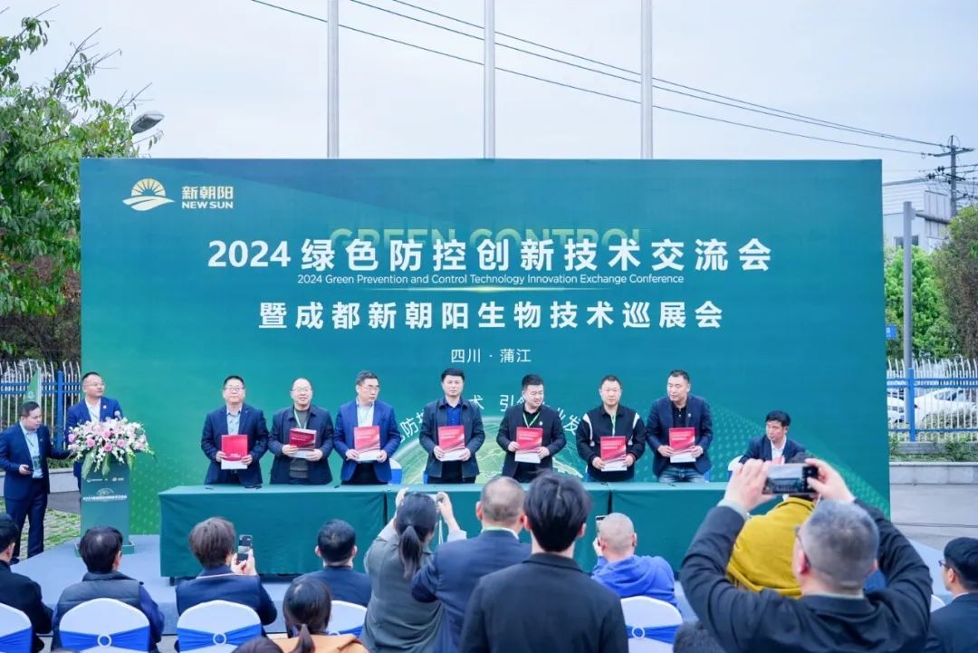 2024年3月24日,由全國(guó)農(nóng)技推廣服務(wù)中心指導(dǎo),中國(guó)農(nóng)藥發(fā)展與應(yīng)用協(xié)會(huì)主辦,成都新朝陽(yáng)作物科學(xué)股份有限公司(以下簡(jiǎn)稱“新朝陽(yáng)”)承辦的2024綠色防控創(chuàng)新技術(shù)交流會(huì)在成都蒲江隆重召開(kāi)。與會(huì)者包括農(nóng)業(yè)農(nóng)村部各位領(lǐng)導(dǎo)、來(lái)自全國(guó)十九個(gè)省農(nóng)業(yè)廳的領(lǐng)導(dǎo)、來(lái)自全國(guó)的新朝陽(yáng)合作伙伴,共同探討綠色農(nóng)業(yè)發(fā)展的前沿技術(shù)和未來(lái)趨勢(shì)。會(huì)議伊始,四川省農(nóng)業(yè)農(nóng)村廳二級(jí)巡視員劉代銀、蒲江縣人民政府副縣長(zhǎng)彭東、中國(guó)工程院院士及貴州大學(xué)校長(zhǎng)宋寶安、全國(guó)農(nóng)技推廣服務(wù)中心主任魏?jiǎn)⑽?、農(nóng)業(yè)農(nóng)村部農(nóng)藥檢定所所長(zhǎng)黃修柱,分別發(fā)表了大會(huì)致辭。他們?cè)谥罗o中,不僅表達(dá)了對(duì)本次會(huì)議的深切關(guān)注與大力支持,更彰顯了對(duì)綠色農(nóng)業(yè)發(fā)展和綠色防控科技創(chuàng)新的堅(jiān)定信念與決心。